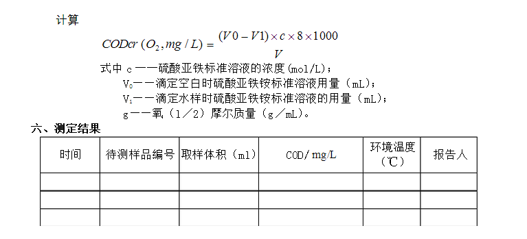 3.對于化學需氧量小于50mg/L的水樣,應該用0.025mol/L重液鉻酸鉀標準溶。硫回滴時用0.01mol/L酸亞鐵銨標準溶液。