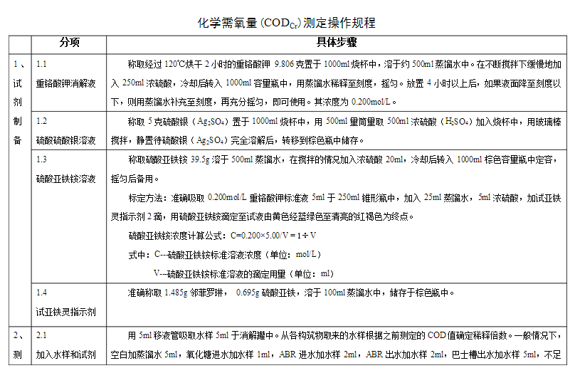 COD化驗標準操作規程簡述