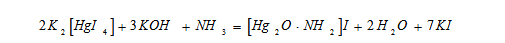 稱取 16.0g氫氧化鈉(NaOH),溶于50ml水中,冷卻**室溫。 稱取7.0g碘化鉀(KI)和10.0g碘化汞(HgI2),溶于水中,然后將此溶液在攪拌下,緩慢加入到上述50ml氫氧化鈉溶液中,用水稀釋**100ml。貯于聚乙烯瓶內(nèi),用橡皮塞或聚乙烯蓋子蓋緊,于暗處存放,有效期1年。