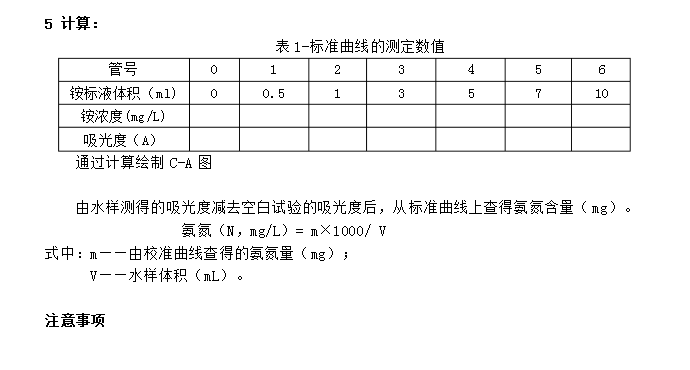 4.空白試驗:以無氨水代替水樣,作全程序空白測定。