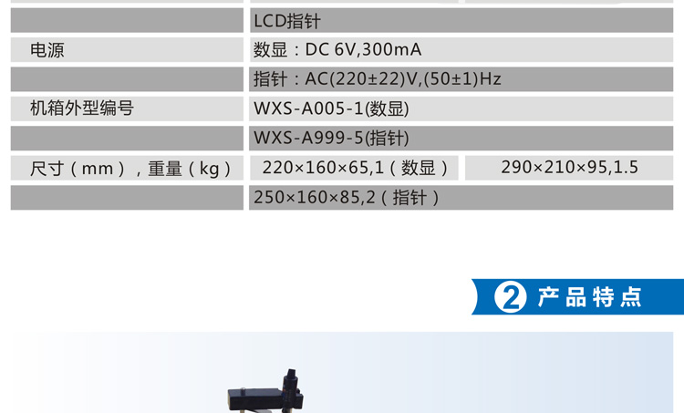 尺寸(mm),重量(kg) 220×160×65,1(數顯)